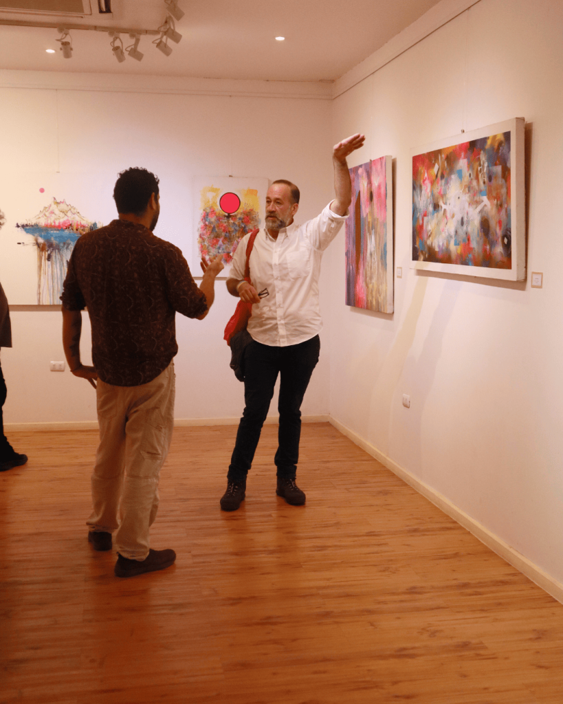“Mi pintura, que no es solo eso, sino que también esculturas con estos volúmenes que salen de la obra, apunta a reflexionar sobre nuestra relación o interrelación con el espacio natural. Y en ella no solo incorporos materiales que son destinados al arte, sino algunos que rescato o reutilizo del mundo artificial”, explicó.
