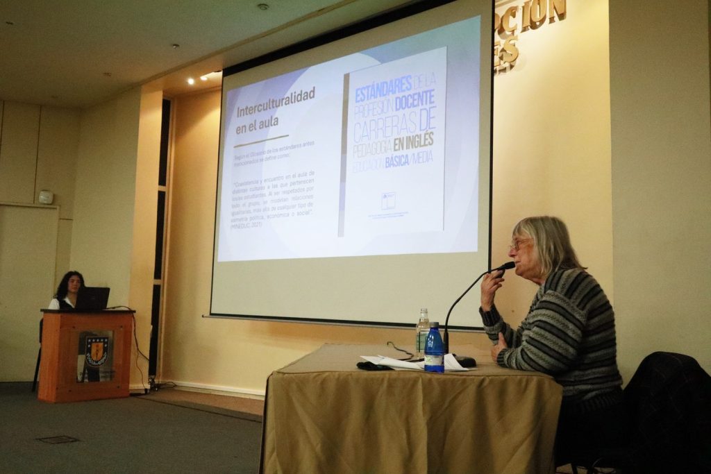 Mientras que a su exposición le siguió la de la Dra. Susan Foote, profesora asociada del Departamento de Idiomas Extranjeros de la Universidad de Concepción. En su espacio, abordó algunos textos que pudieran facilitar la enseñanza de inglés bajo el contexto de la interculturalidad, como el libro El peligro de la historia única, de Chimamanda Ngozi Adichie.