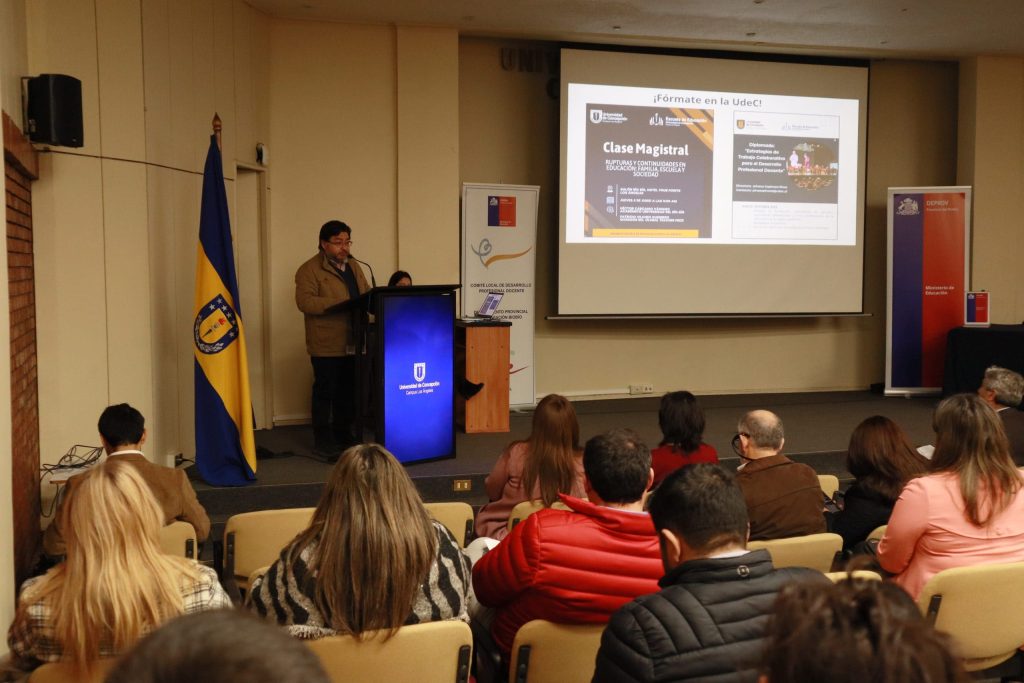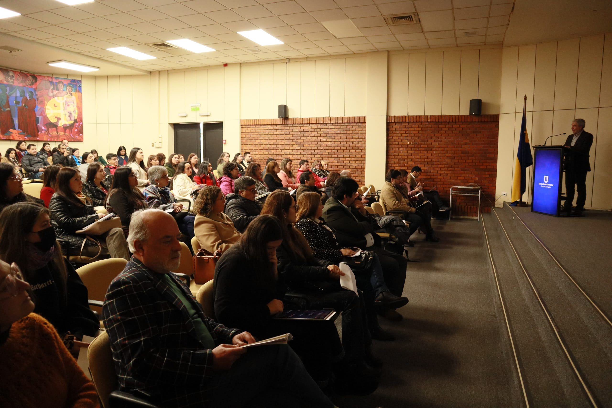 El taller formativo “El Marco para la Buena Enseñanza como referente para la formación y el desarrollo profesional docente” se realizó en el Campus Los Ángeles, logrando convocar un importante número de directivos y docentes de la zona y también autoridades del ramo, como el jefe del Departamento Provincial de Educación de Biobío, Pablo Ríos Muñoz.