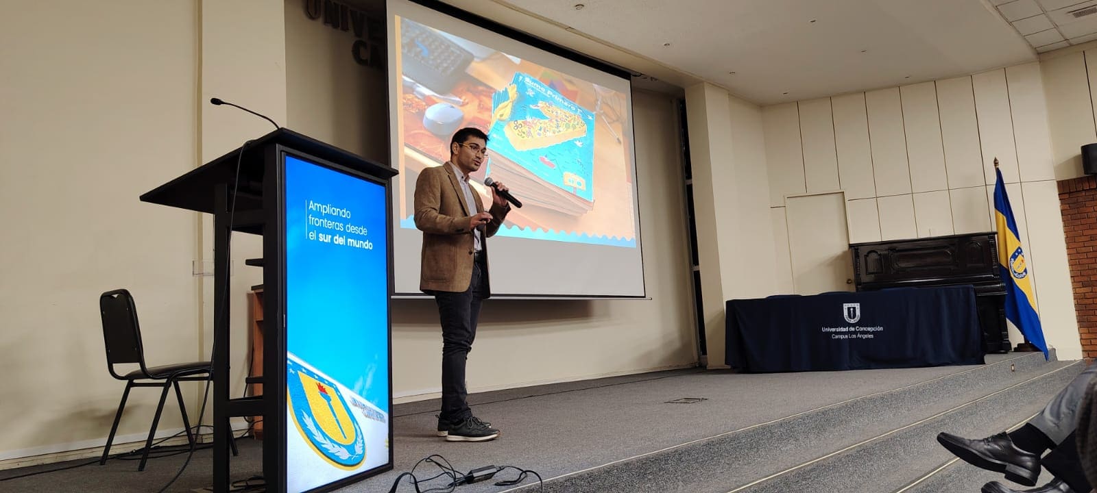 Paula Holguín, coordinadora de la línea de desarrollo del chat SP del Plan Sumo Primero, valoró el entusiasmo y la participación activa de la comunidad educativa. “Hoy día hicimos el lanzamiento acá en la Universidad de Concepción, en el Campus de Los Ángeles, en donde pudimos mostrar las distintas líneas de trabajo en las que estamos a nivel nacional. En particular, abordamos los talleres que vamos a hacer con profesores y jefes de UTP, además de la posibilidad de interactuar con el chat SP, que ya está disponible. La participación ha sido increíble, con el auditorio lleno y muy buena recepción por parte de profesores y estudiantes”.
