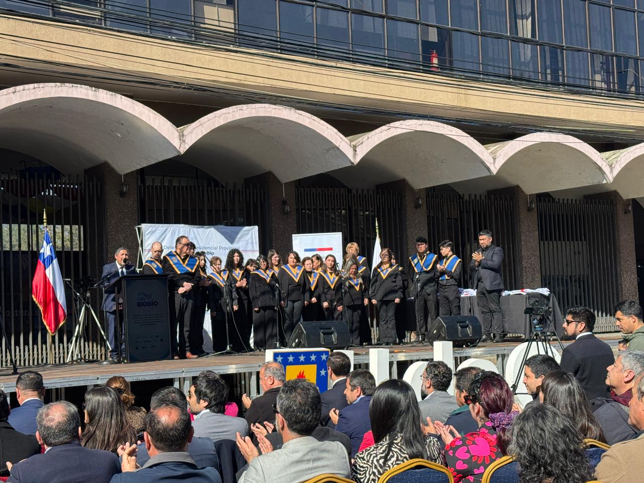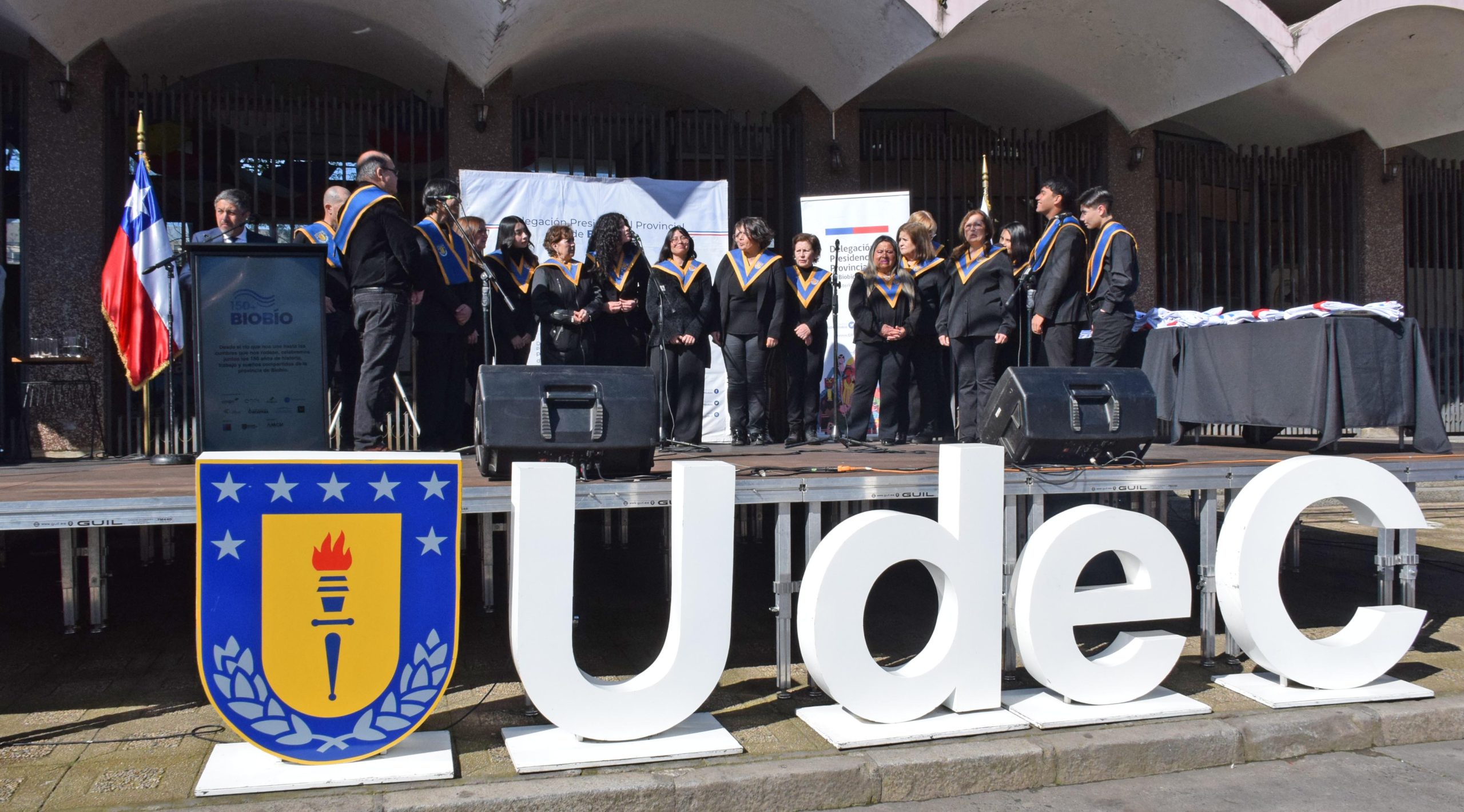 La ceremonia de izamiento de la bandera provincial marcó el inicio del programa de actividades conmemorativas que se extenderán durante octubre, orientadas no solo a recordar el pasado, sino también a proyectar un futuro compartido y sostenible para las 14 comunas que integran la provincia de Biobío. La instancia contó además con la participación del coro de la Universidad de Concepción Campus Los Ángeles, quienes estuvieron a cargo de realizar la interpretación del himno nacional, dirigidos por José Parada Bascuñan.